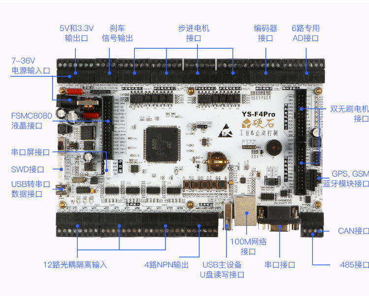 硬石 STM32F407IGT6开发板 电机控制 工控隔离接口 YSDEBSF4020